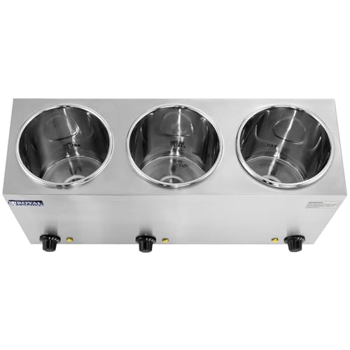 Royal Catering RCBM-3/4R Au Bain Marie Warmhoudplaat 3 Containers met 2,75L met Deksel 30-110 °C 3 x 150W Roestvrij Staal Keukenapparatuur in de Keuken of Huis