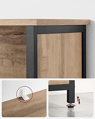 VASAGLE LSC066B50 Keukenkast, boekenkast, met 2 open vakken, kast met verstelbare planken, boekenkast met deuren, stalen frame, voor woonkamer, keuken en werkkamer, eikenbruin-zwart